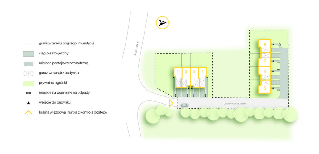 Ekskluzywna enklawa ośmiu domów miejskich przy ul. Kuropatwy 32 na warszawskim Ursynowie to harmonijne połączenie nowoczesnej elegancji z naturą. Projekt nawiązuje do idei komfortowego życia w mieście, jednocześnie czerpiąc z atutów zielonego otoczenia Lasu Kabackiego.